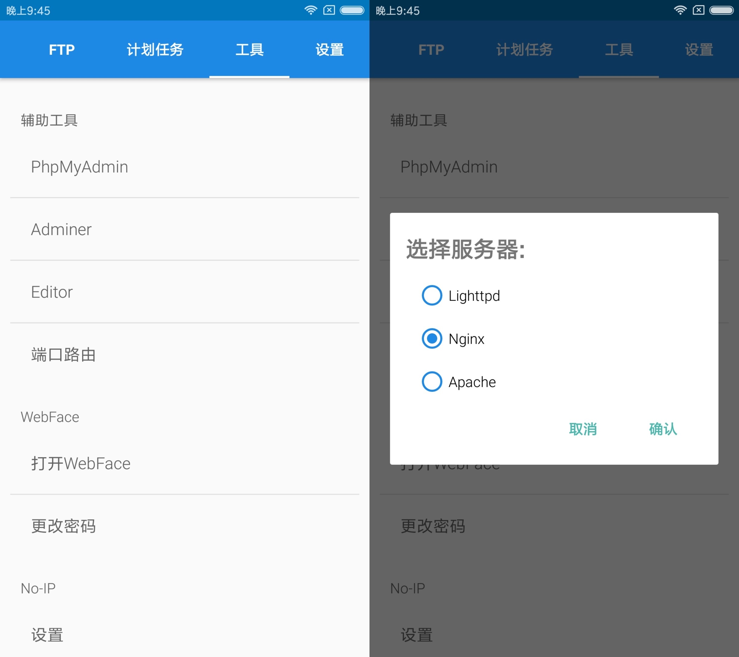 - 点击「工具」再点击「PhpMyAdmin」,选择等待下载完成